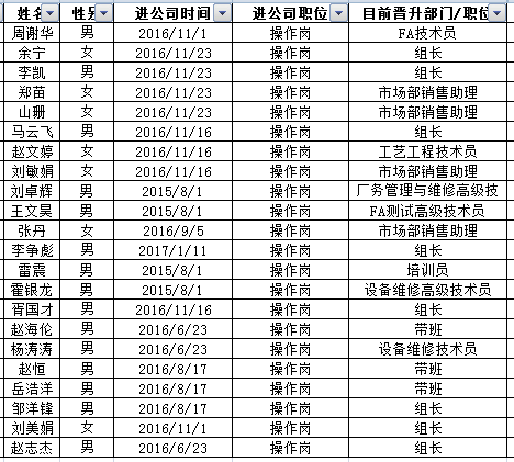 1.管理通道——组长/带班——领班/培训员——主任——段长/主管