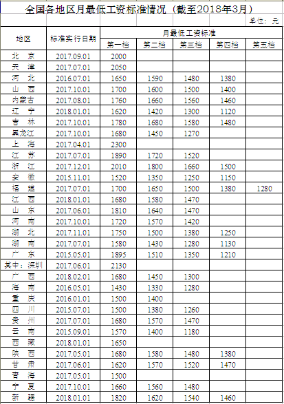 [下一篇] 全国各地区小时最低工资标准情况(截至2018年3月)
