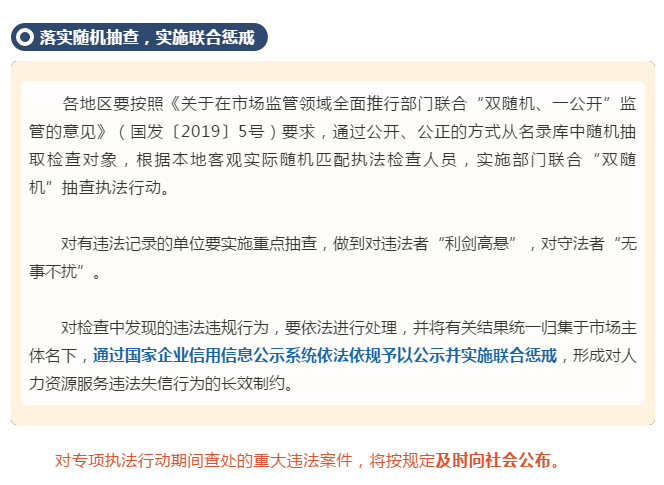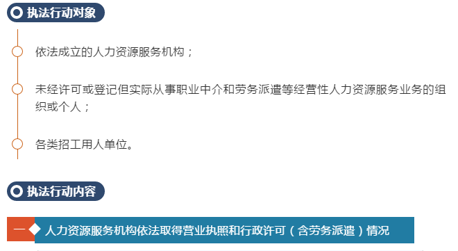 近一段时期以来,部分地区人力资源服务违法违规案件有所增多,少数不法人力资源服务机构提供虚假就业信息,参与签订不实高校毕业生就业协议并谋取不正当利益,个别地区还出现了以职业介绍为名组织传销和强迫劳动等违法犯罪案件,严重侵害劳动者人身财产权益,社会影响恶劣。 针对这些突出问题,人力资源社会保障部、市场监管总局决定自2019年3月28日至4月26日,在全国范围内开展清理整顿人力资源市场秩序专项执法行动。