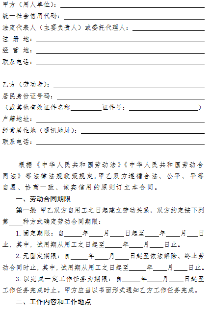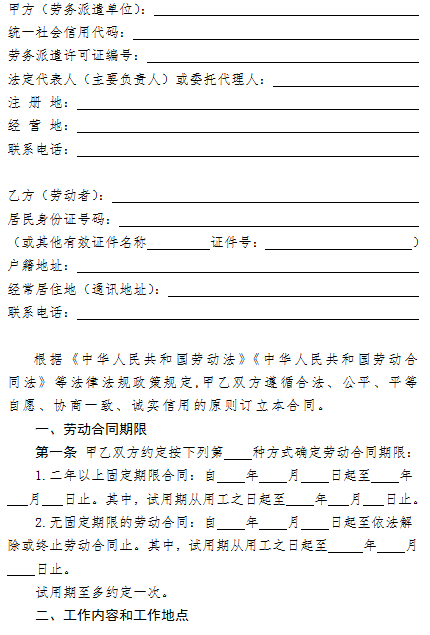 附件: 1.劳动合同(通用) 2.劳动合同(劳务派遣)
